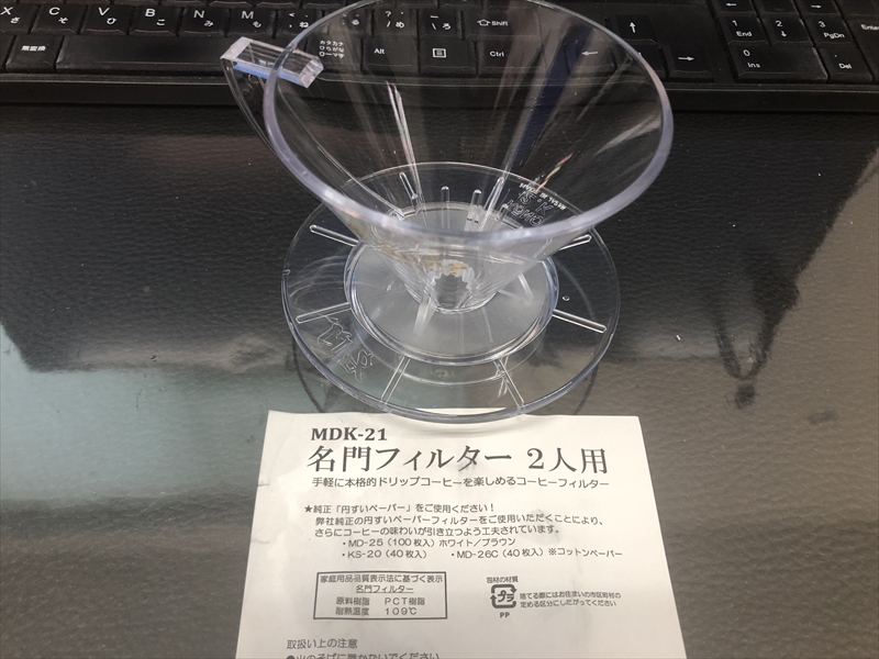 ずっとKONOの名門を使い続けていますが、1杯入れが上手くできないのでリブが短くて穴の小さくなったMDK-21を試してみることに。